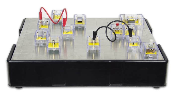 | 1: Series resistors circuit 2: Parallel resistors circuit 3: Compound resistors circuit 4: Ohm's law I = F (V) 5: Ohm's law I = F (R) 6: Kirchhoff's Laws on voltage 7: Kirchhoff's Laws on current 8: Superposition theorem 9: Thevenin's theorem 10: Norton's theorem 11: Voltage divider circuit 12: Wheatstone bridge circuit 13: R, C series circuit in AC circuit 14: R, L series circuit in AC circuit 15: R, L, C series circuit in AC circuit 16: Characteristics of transistor 17: Common base transistor amplifier circuit 18: Common emitter transistor amplifier circuit | 19: Common collector transistor amplifier circuit 20: Constant DC voltage control circuit with transistor 21: Capacitors in series and parallel circuit 22: Characteristics of PTC resistor 23: Characteristics of NTC resistor 24: Characteristics of the transformer 26: Full-wave rectifier 27: The function of the relay 28: Inductors in series and parallel circuit 29: Magnetic induction circuit transformer 30: Characteristics of diode in DC circuit 31: Characteristics of diode in AC circuit 32: Rectifier and filter current circuit 33: Characteristics of Zener diode |