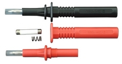 TEST PROBE (red, black). Safety Φ4mm connection. Spring loaded tip with the shrinkable tube. Fuse inside: 6X30. Insulator: PA. CATIII 1000V. Max. current: 20A